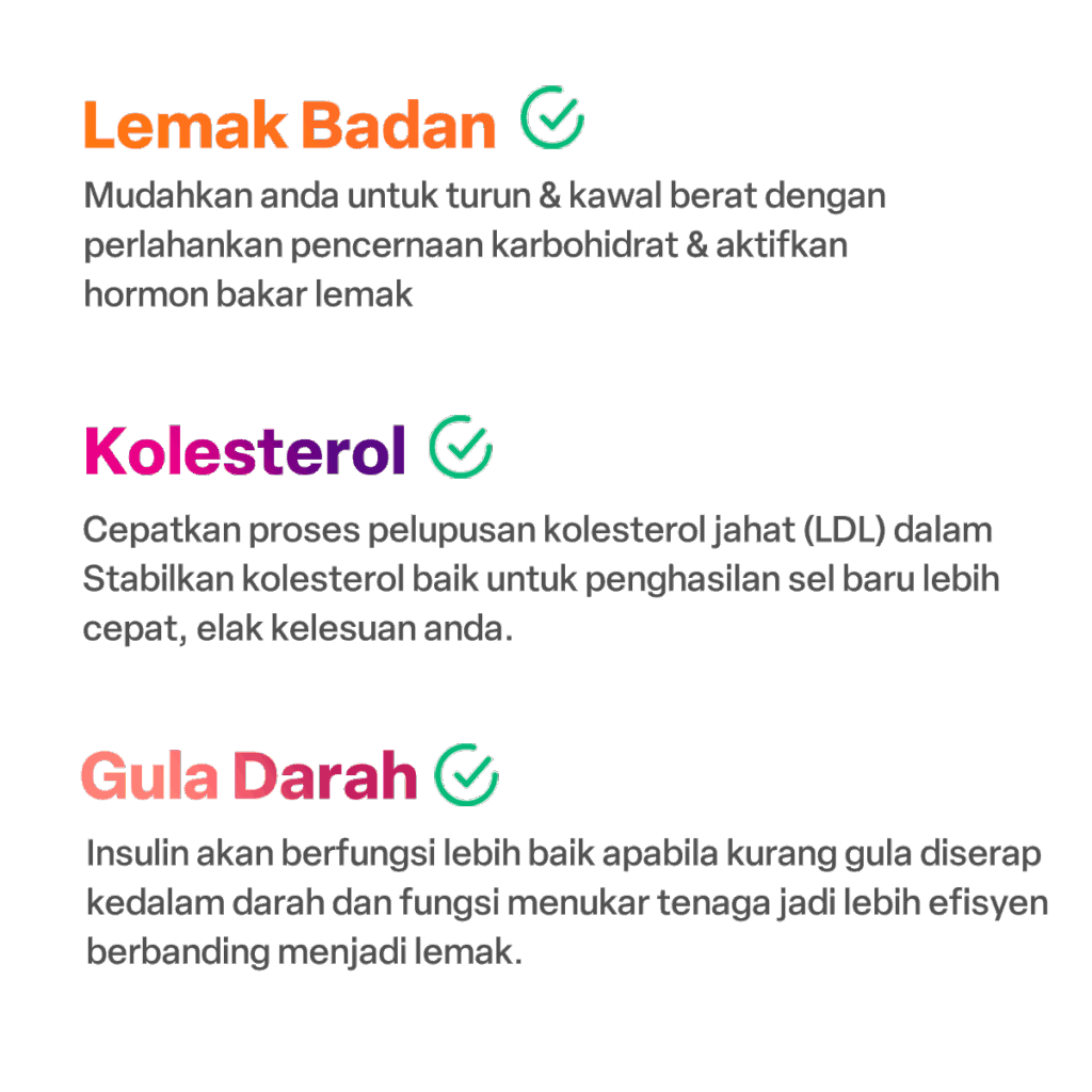 BIOKENAF® target baiki proses metabolisma badan dengan merawat pencernaan karbohidrat, perlahankan serapan gula ke dalam darah jadikan fungsi insulin & hati lebih baik, mengakibatkan hormon pembakar lemak aktif secara berterusan. Hasilnya, usaha untuk anda buang lemak & turun berat jadi lebih mudah, cepat dan kekal.